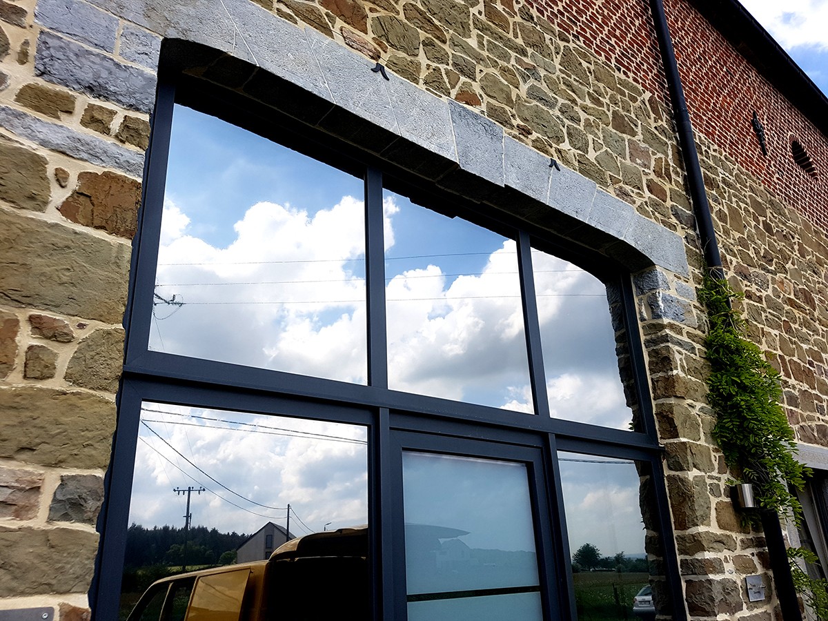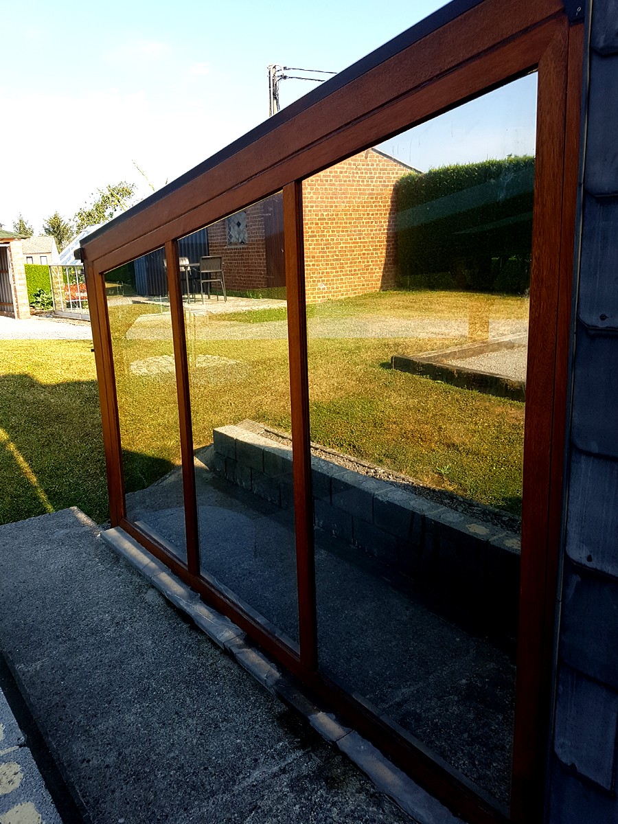 Pose d'un film de protection solaire anti-chaleur pour diminuer la température intérieure d'une habitation.
